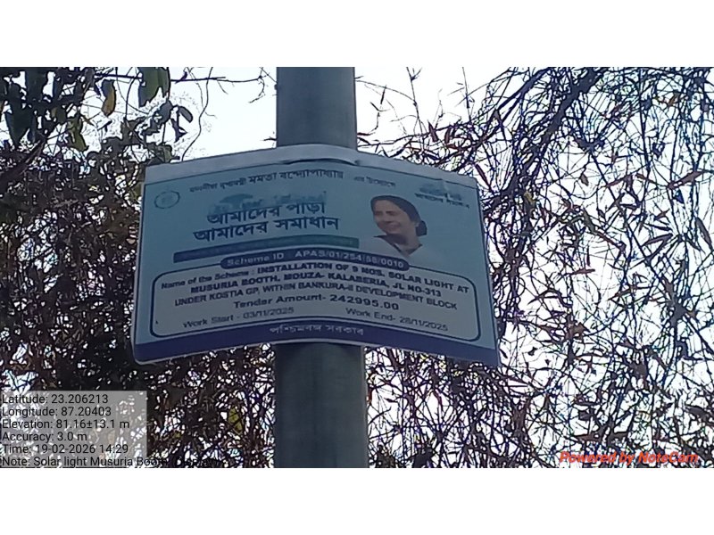 INSTALLATION OF 9 NOS SOLAR LIGHT AT MUSURIA BOOTH UNDER KOSTIA GP MOUZA KALABERIA JL NO 313