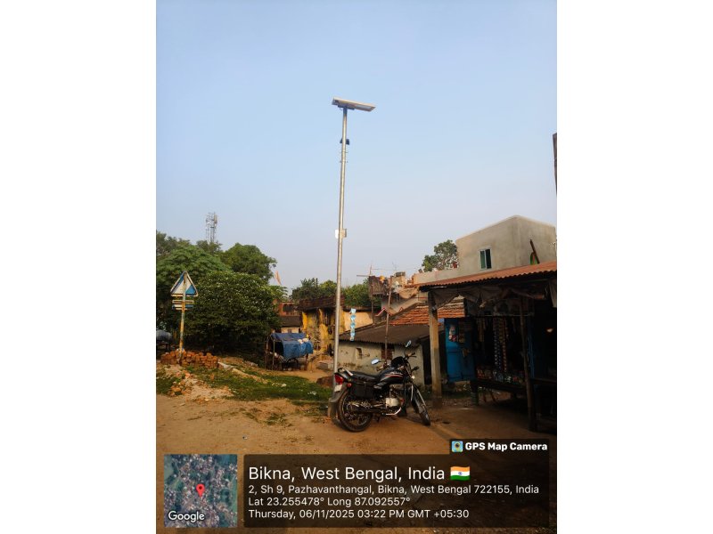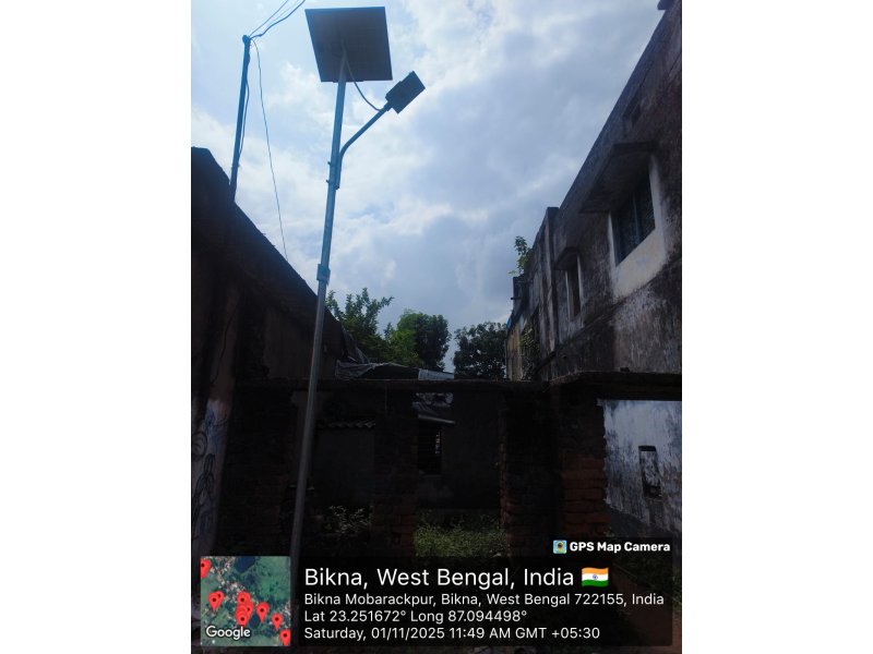 INST OF SOLAR LIGHT 4 NOS FROM ASHOKE SINGHA HOUSE TO BIKNA BAGDI PARA KALI MANDIR JL NO 235 MOUZA BIKNA UNDER BIKNA GP