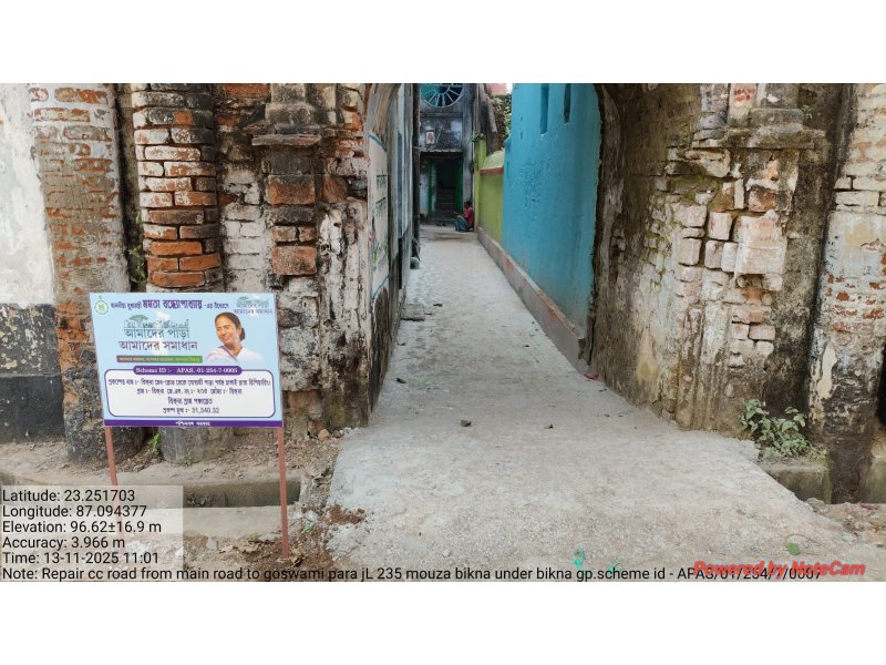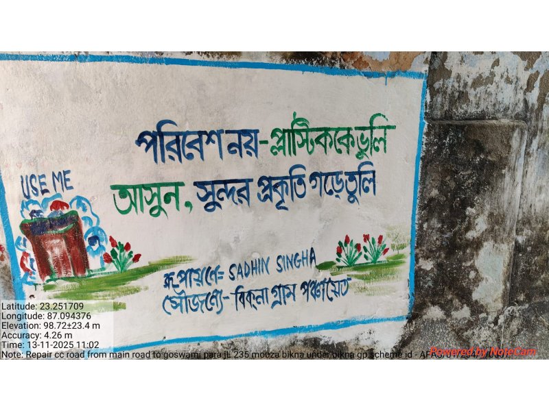 REPAIR CC ROAD FROM MAIN ROAD TO GOSWAMI PARA JL NO 235 MOUZA BIKNA UNDER BIKNA GP