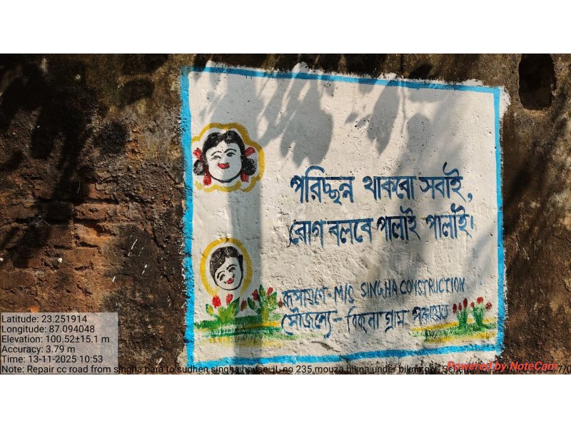 REPAIR CC ROAD FROM SINGHA PARA TO SUDHEN SINGHA HOUSE JL NO 235 MOUZA BIKNA UNDER BIKNA GP